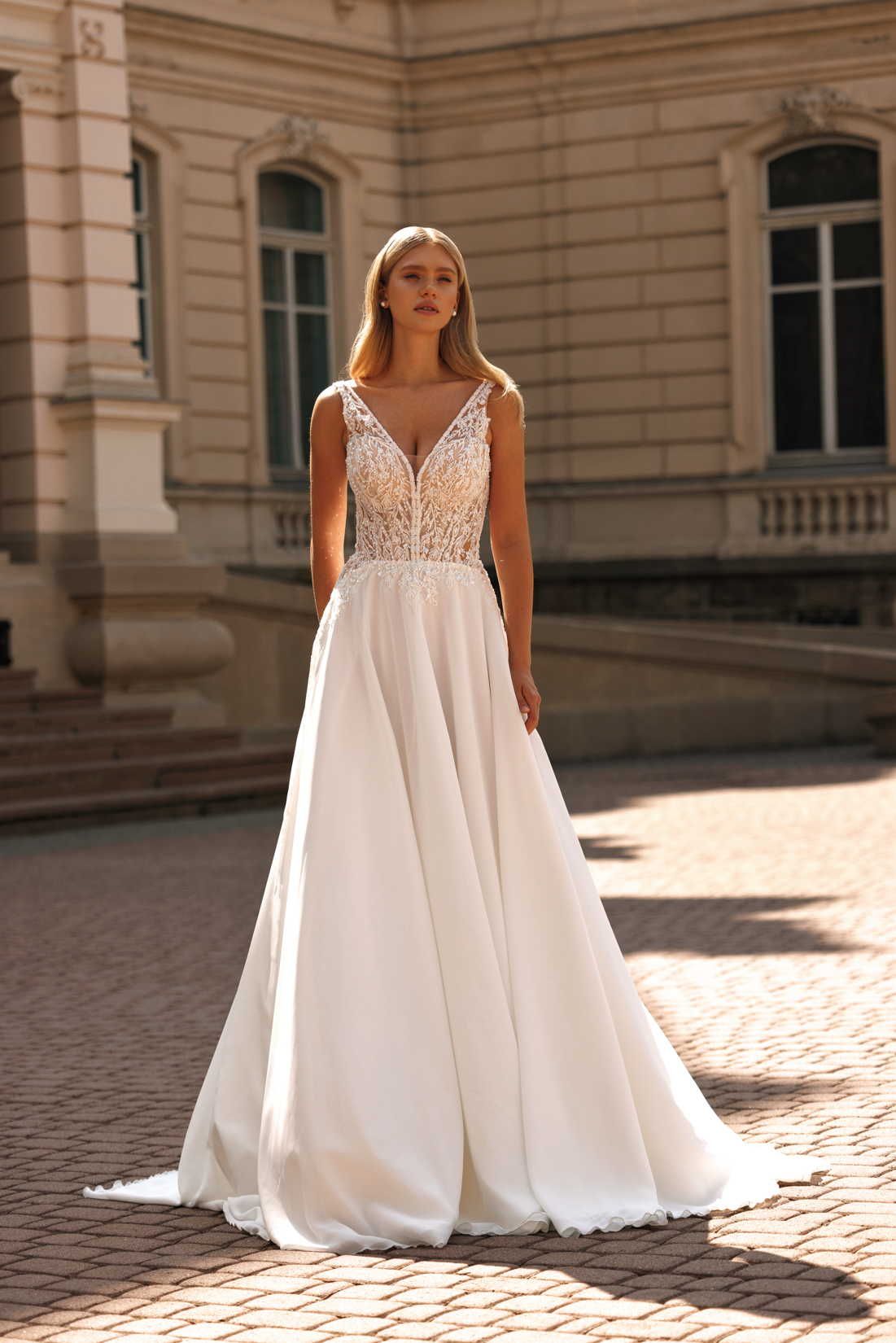 Bianco Evento verbindet Qualität, Handwerkskunst und einen attraktiven Preis – und spricht damit Bräute an, die Wert auf Stil, Komfort und Erschwinglichkeit legen. Sie bietet eine breite Palette an Stilrichtungen – von romantisch, klassisch über modern elegant bis hin zu eher verspielten oder legeren Looks.