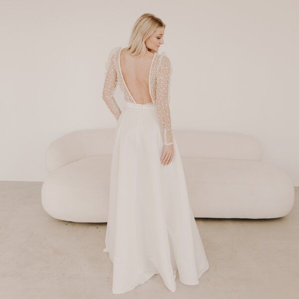 Melory zeichnet sich durch eine harmonische Balance aus moderner Zurückhaltung und klassischer Brautromantik aus. Sie richtet sich an Bräute, die sich ein Kleid wünschen, das edel, modern und tragbar ist – ohne überladen zu wirken aber mit dem gewissen „WOW“-Effekt.