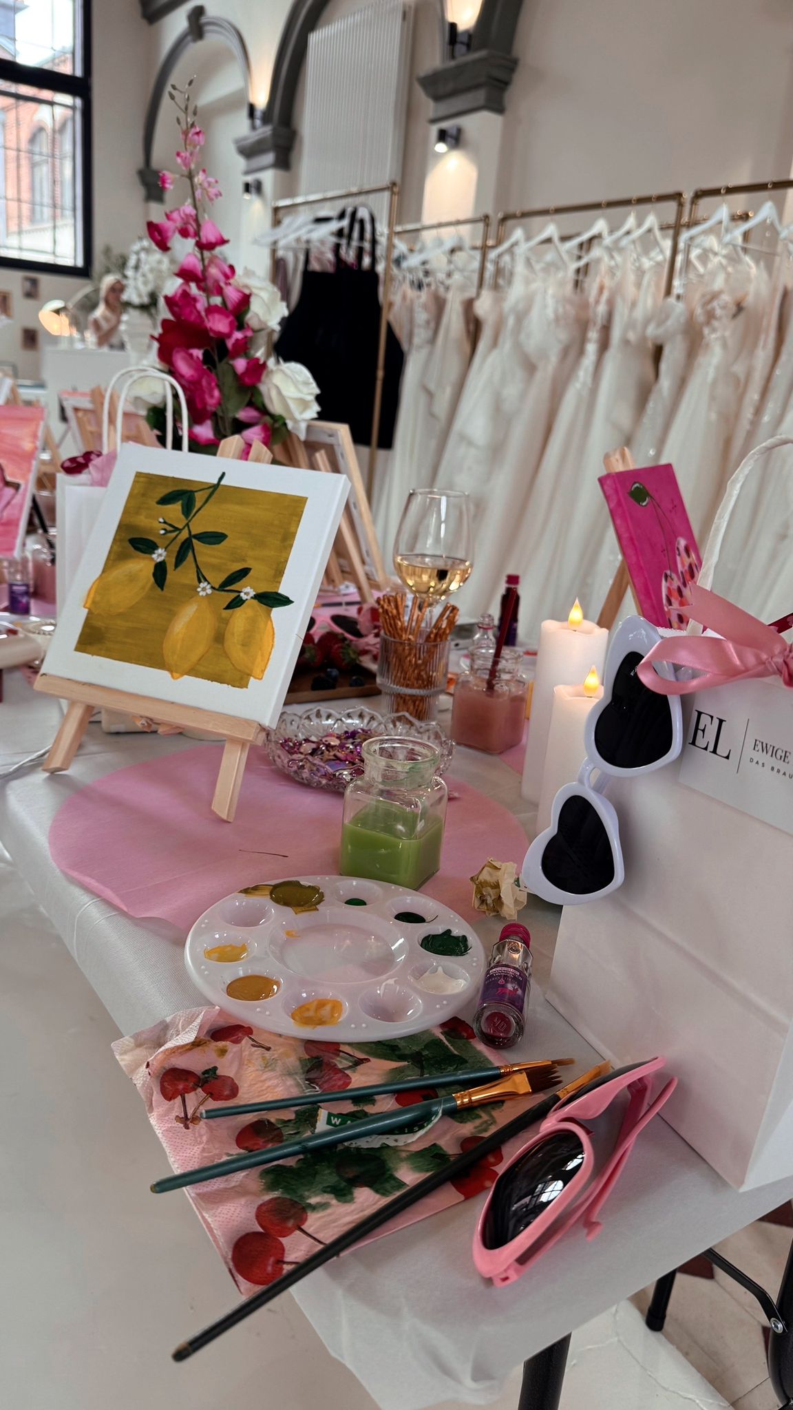 Du planst einen ganz besonderen Junggesellinnenabschied für eine liebe Freundin? Dann weißt du, wie schwer es sein kann, das perfekte Event zu finden: etwas Persönliches, das verbindet, Freude bringt und gleichzeitig stilvoll und besonders ist. Unser Wine & Art-Event ist genau das – ein kreativer JGA-Moment voller Liebe, Lachen und bleibender Erinnerungen. Inmitten der charmanten Atmosphäre unseres Brautstudios in der alten Tabakfabrik in Steinfurt laden wir euch ein, Kunst zu schaffen, Wein zu genießen und die Vorfreude auf den großen Tag gemeinsam zu feiern.
